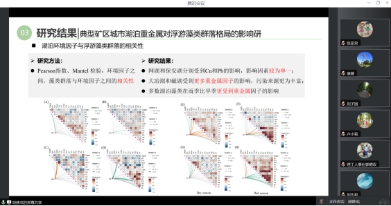随后,胡天鹏博士和朱文君博士分别做博士后中期考核汇报。胡天鹏博士中期汇报课题为《鄂东地区黑碳及多环芳烃湖泊沉积记录及其对人类活动响应》,目前项目进展顺利,已经完成课题工作量的样品采集及预处理工作。在站期间获批湖北省重点研发计划(社会发展领域)1项,部级重点实验室开放课题1项,湖北省重点实验室开放课题1项,校企合作横向课题1项。后续将尽快完成样品分析测试,进入数据分析及成果撰写阶段。朱文君博士中期汇报课题为《MOFs衍生碳基材料及其降解有机污染物的研究》,目前项目进展顺利,已完成一个研究体系(Zn(NO3)2修饰Cu-MOF衍生富OV-ZnCuOx@C的制备及其应用),在站期间获批湖北省重点实验室开放课题1项。后续将完善其他体系的表征与分析,完成成果撰写。