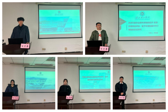 随后,十二位研究生依次登台,汇报的研究方向涵盖气候变化、污染治理、资源循环、环境健康等多个维度,充分展现了环境学科的交叉性与时代性。李连捷副教授指导的课题组成为分论坛的亮点之一,多位学生围绕“MRIO-LCA模型”展开研究:宋美华探讨了云南咖啡的全球碳足迹,李连贺分析了方便面全生命周期的碳排放,袁旭东关注纯电动汽车的碳不平等性,李在猛评估洪涝灾害农业损失修复的资源环境效应,冯晨雪则构建了中国旅游交通可持续性评价体系。这些研究从系统视角揭示了经济活动与环境影响之间的复杂关联,为绿色转型提供了数据支撑。