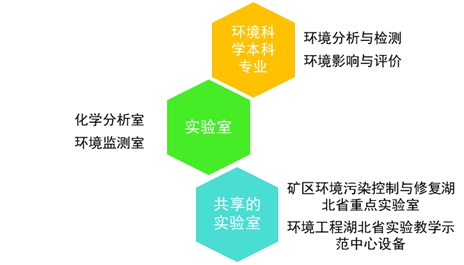 环境科学本科专业设置了环境分析与监测,环境影响与评价等方向。建立了化学分析,环境监测等实验室,还共享矿区环境污染控制与修复湖北省重点实验室和环境工程湖北省实验教学示范中心的设备。本专业是“十二五”湖北省重点特色学科,“十三五”省属高校优势特色学科群的重要支柱之一。《环境影响评价》课程先后被评为湖北省精品课程(2007),湖北省精品视频公开课(2013)和湖北省精品在线开放课程(2017)。《环境监测Ⅰ》先后被评为线上线下混合式省级和国家级一流课程。已建成国家环境保护培训基地(第一批)、湖北省县级环境监测技术人员培训基地,多年来为湖北省基层环境监测站输送了大量的环境监测专业人才。