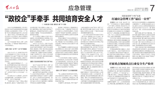 6月16日,黄石日报在应急管理板块头条对我校安全工程“校政企”深度合作人才培养新模式进行了题为《“政校企”手牵手 共同培育安全人才》的专题报道。该报道分析了学校招生难、企业引才难、地方安全生产水平提升难的困境,表达了学校重点为地方经济建设和社会发展服务的服务面向定位,体现了黄石市应急管理局在‘下基层、察民情、解民忧、暖民心’实践活动中的主动作为,展现了黄石这座老牌工业城市对安全人才的渴求及社会担当,彰显了“政校企”深度合作人才培养的决心。全文由破局、重塑、创新三个方面组成。