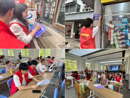 社区服务环节,志愿者积极融入社区事务。与社区工作人员熟悉社区工作流程,张贴门前三包责任公示牌;与社区负责人一起组织社区活动,和社区老人一起进行声乐练习。
