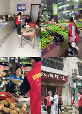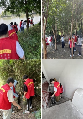 在创文创卫实践环节,由各班团员先进份子组建起的志愿者直接参与社区环境清理工作,并利用专业知识对周边的居民和商户进行环保知识的科普。通过实践活动与专业知识的结合,更好的促使居民形成良好的环保意识。