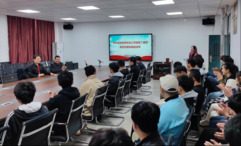 在交流会上,丁康君副总经理讲述了自己从实习到毕业找工作到创业的种种经历与技巧。1997年他只身一人前往宜兴去找寻公司、企业实习,毕业之后,他自己找工作,讲到面试时,还教导了一些技巧如:和老板宣传自己的所拥有的能力,投其所好而言之。到2003年,他开始自己创业,到如今创业成功。期间讲到了其公司的业绩,以及创业起步该如何去做,并最后教导学子们,企业要发展,一定靠的是过硬的技术。