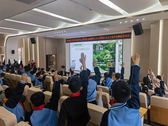 活动当天,黄金山实验小学的校园里充满了浓厚的环保氛围。绿色天使志愿服务大队的志愿者们身着统一的志愿马甲,带着精心准备的环保知识宣讲课件,走进了孩子们的课堂。他们通过生动的讲解、有趣的互动和有奖问答,向孩子们传递了志愿服务的重要性和长江保护的相关知识。志愿者们用浅显易懂的语言和生动的案例,让孩子们深刻认识到保护环境的重要性,激发了他们对环保事业的热爱和关注,也为孩子们埋下了争当志愿者的种子。