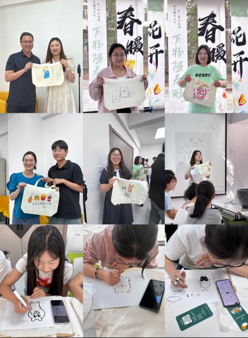 师生互动让灵感碰撞与情感联结。整场活动环境学院师生以艺术为媒,互相交流创作灵感与生活感悟。在蓝染摊位,一位学生向老师请教扎染技巧,两人边操作边聊起学业压力的调节方法;帆布包区域,几位同学邀请老师为自己的作品签名,笑声此起彼伏。“平时课堂上老师很严肃,今天发现我们原来可以这样轻松相处。”一位参与活动的学生说。
