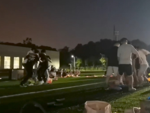 游戏环节成为欢乐催化剂。“公鸡下蛋”个人赛中,选手们腰间绑着装满乒乓球的盒子全力跳动,乒乓球落地的清脆声响与观众的加油呐喊此起彼伏,最终抖球最多的同学获封“最佳下蛋公鸡”。踩气球环节更是高潮迭起:双人绑腿组两两协作“护球攻防”,团队混战中十人成团“绝地求生”,气球爆裂声与欢笑声交织,将青春的活力与拼劲展现得淋漓尽致。