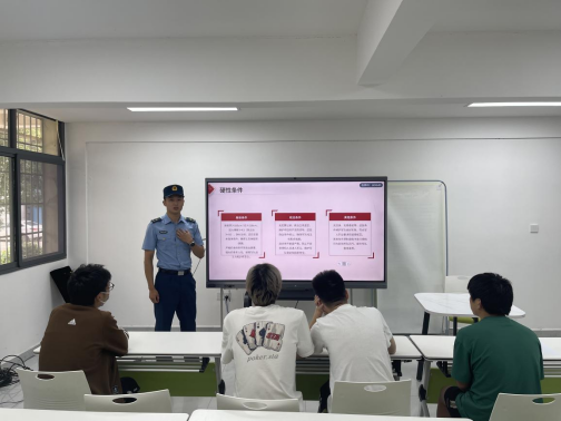 党总支部副书记姚承对2025年下半年征兵政策进行了全面且细致的解读。他从入伍基本条件、报名流程、体检政审要求等方面展开,重点阐述了大学生入伍的学费补偿、升学优惠、就业保障等一系列优抚政策。副书记结合往年征兵工作经验,对同学们普遍关心的学籍保留、考研加分、考公定向招录等问题进行了深入讲解,让同学们对入伍政策有了更清晰、准确的认识。