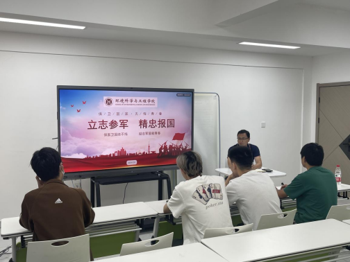 辅导员陈三介绍了此次征兵动员会的目的与意义,强调参军入伍是青年学子将个人理想融入强国强军伟大事业的重要途径,鼓励在场同学积极投身国防建设,在军营中实现人生价值。