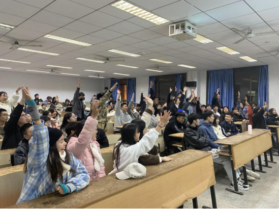 晚上七点,签到完毕后,活动准时开始。首先,主持人尚天娇向学生们讲解了保护环境以及学习环保知识的重要性并宣布比赛正式开始。第一环节为必答题环节,每个小组成员轮流回答一道环保知识题,参赛选手知识储备量丰富,连续十数轮未出现答题错误,第一环节很快结束,各参赛队伍之间差距微小。第二环节为抢答环节,在此环节中,学生们纷纷踊跃举手抢答,现场气氛热烈,最后抢答环节衍生了答错表演节目的小互动,更是将本次比赛的氛围推向高潮。在参赛选手意犹未尽的笑声中,本次活动圆满落幕。